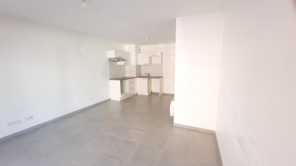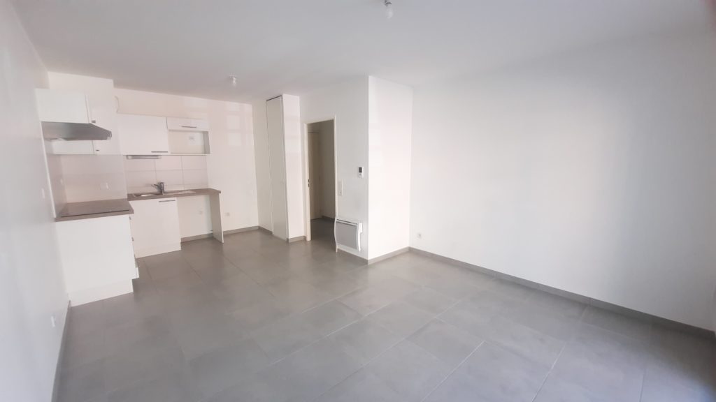 Dans une résidence de standing récente de 2019, bel appartement T2 de 43 m², comprenant : une entrée, une belle pièce de vie de 20 m² avec un coin cuisine, donnant sur une grande terrasse de 15 m² , une chambre, une grande salle de bains avec wc.