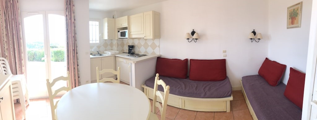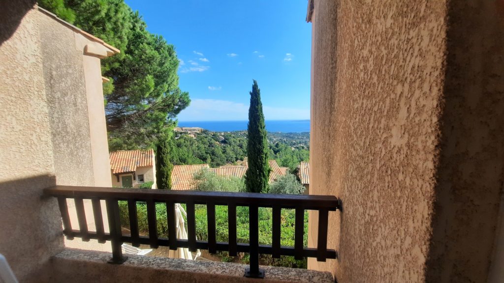 Il comprend une vaste entrée avec un coin nuit, une belle chambre traversante, une pièce de vie avec coin cuisine donnant sur une terrasse en loggia avec une magnifique vue panoramique sur le Golfe de Saint Tropez, une salle de bains, un wc indépendant.